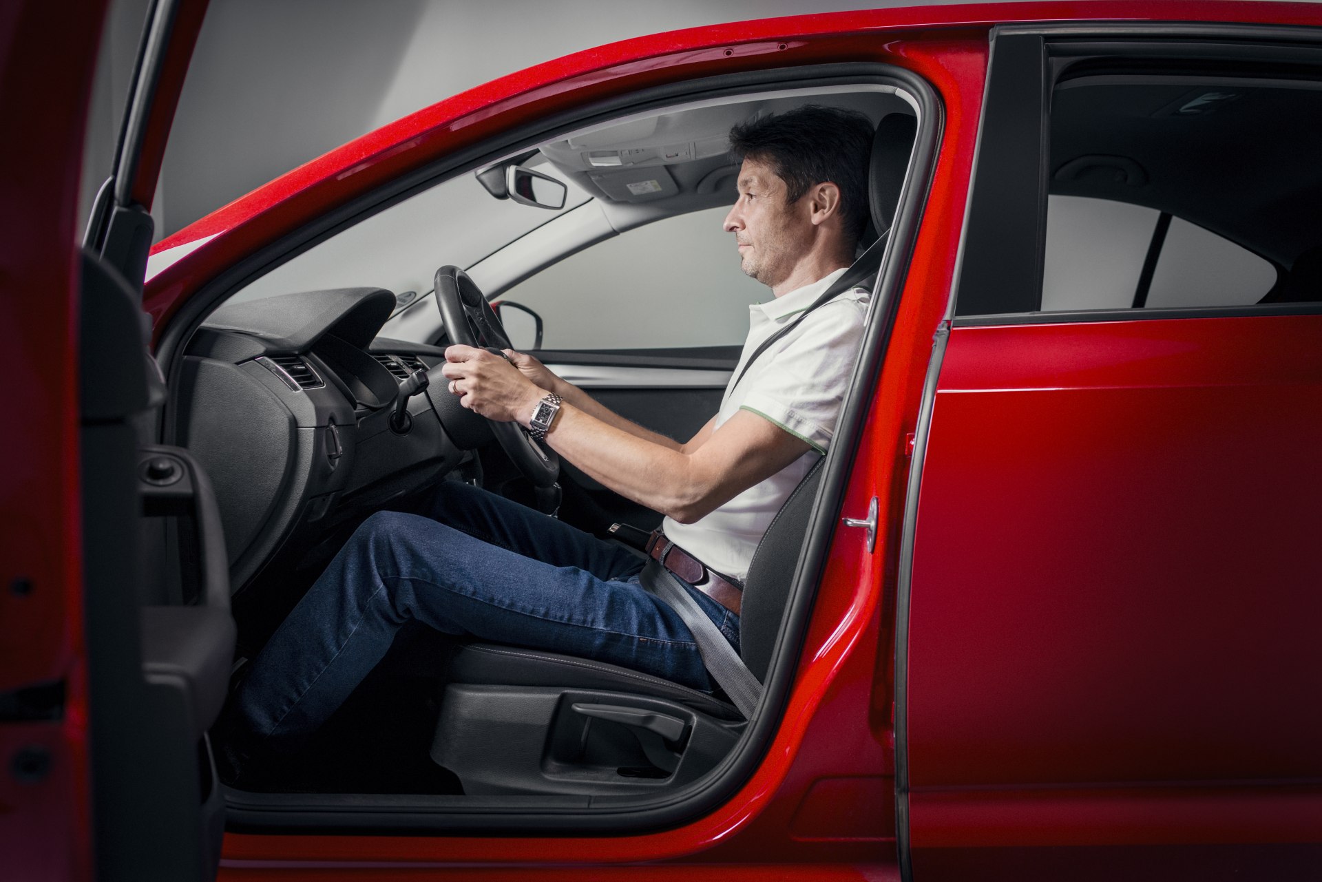 „Abychom mohli vůz dobře ovládat, je správné usazení těla zásadní. Je nutné na všechny ovládací prvky – tedy především volant a pedály – dobře dosáhnout, aniž by se tělo muselo jakkoli složitě hýbat,“ říká Robert Šťastný, jeden ze členů týmu Výzkumu dopravní bezpečnosti ŠKODA AUTO.
