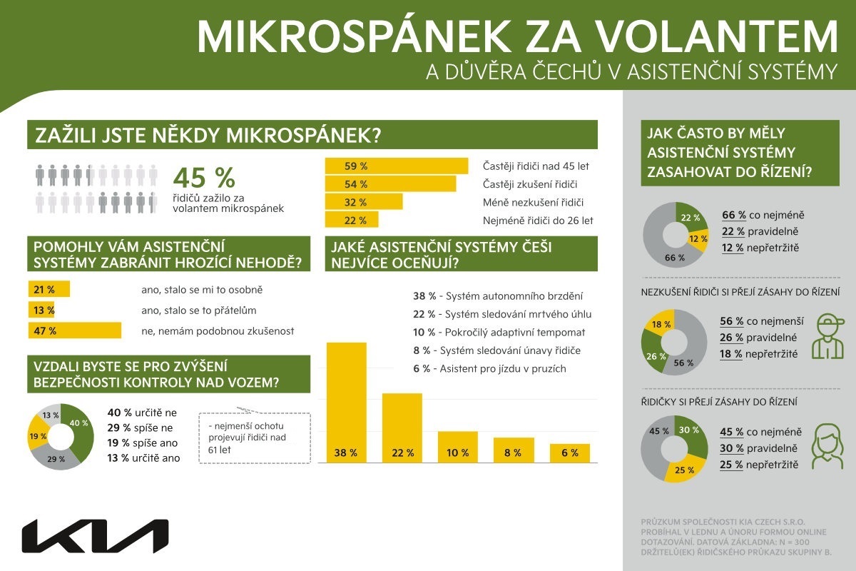 Většina českých řidičů má podle rozsáhlého průzkumu společnosti Kia Czech zaměřeného na bezpečnost silničního provozu přímou zkušenost s mikrospánkem. 45 % lidí přiznalo, že zažili mikrospánek jako řidiči, dalších 15 % potom uvedlo, že byli jeho svědkem z pozice spolujezdce.