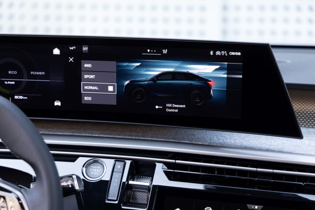 K dispozici jsou čtyři jízdní režimy: Normal pro běžné cestování s prioritou efektivity, 4WD pro náročné podmínky s rozdělením výkonu mezi nápravy 50:50, Sport pro maximální dynamiku a Eco s omezeným výkonem pro šetrnější jízdu. V režimu Normal umožňuje lithium-iontová baterie o využitelné kapacitě 73 kWh modelu E-3008 dojezd až 487 km, E-5008 pak 465 km. Rychlonabíjení z 20 % na 80 % trvá přibližně 30 minut.