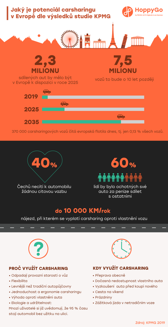 Studie KPMG odhaduje, že potenciál carsharingu bude z těchto důvodů růst i nadále a v roce 2025 by v Evropě mělo být k dispozici 2,3 milionu sdílených aut. O deset let později by již mělo být sdíleno dokonce 7,5 milionu vozů. Aktuálně čítá evropská flotila carsharingových vozů 370 000 aut, tedy jen zhruba 0,13 % všech vozů.