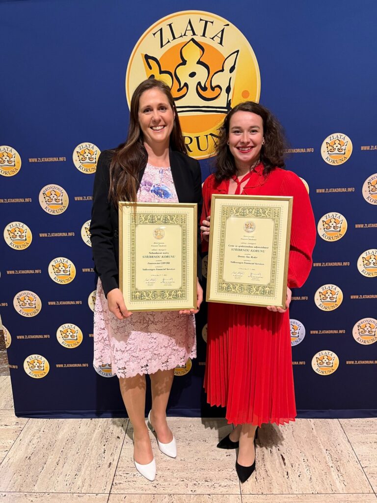 Druhé místo za produkt Financování CHYTŘE v kategorii nebankovních úvěrů a cenu v kategorii Zelená Koruna za podporu domova seniorů Sue Ryder si na galavečeru 21. ročníku soutěže Zlatá Koruna převzala vedoucí oddělení Produktu Jana Hrušková.