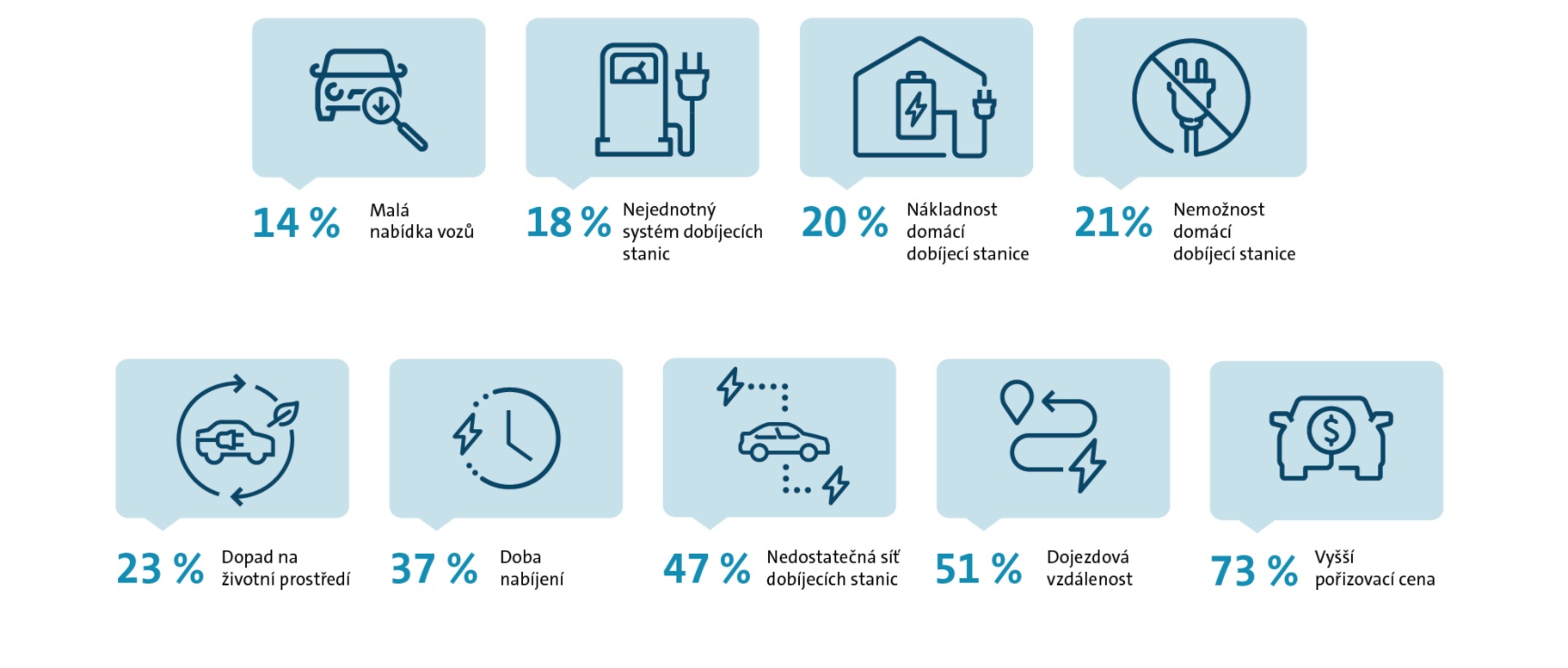 Při pořízení elektromobilu by čeští řidiči nejraději nepřekračovali šesticiferné sumy. 37 % z nich by se chtělo vejít do půl milionu korun, pro každého šestého by pak maximální limit představovala částka 750 000 Kč. Právě vyšší pořizovací cena patří společně s limitovanou dojezdovou vzdáleností a hustotou dobíjecích stanic k nejčastěji zmiňovaným obavám.