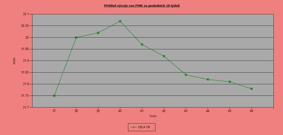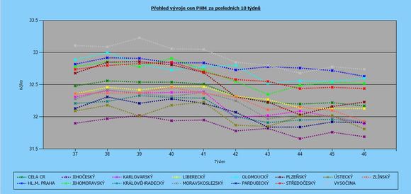 | 46. týden | 32,23 | 32,44 | 31,81 | 32,74 | 31,93 |