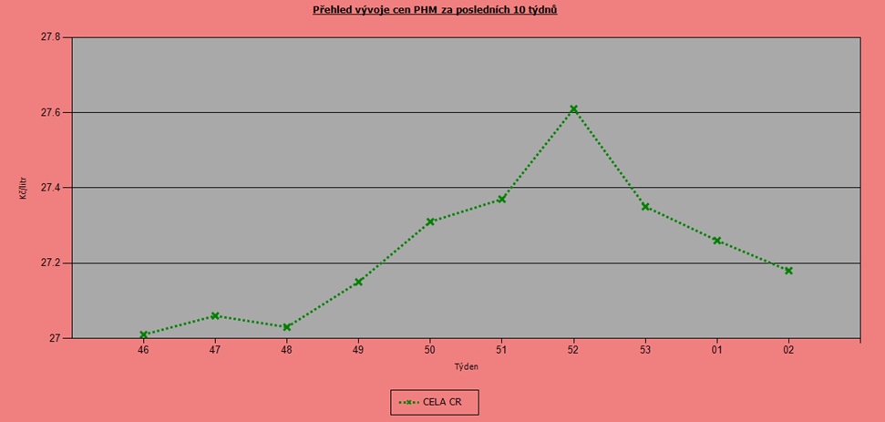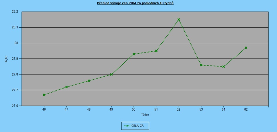 Začátek roku 2021 se nese stále v duchu příznivých cen pohonných hmot, které vykazují jen minimální výkyvy. Za posledních deset týdnů stoupla průměrná cena Naturalu 95 o 30 haléřů na 27,97 Kč/l. U nafty je růst téměř neznatelný, pouhých 17 haléřů na 27,18 Kč/l.