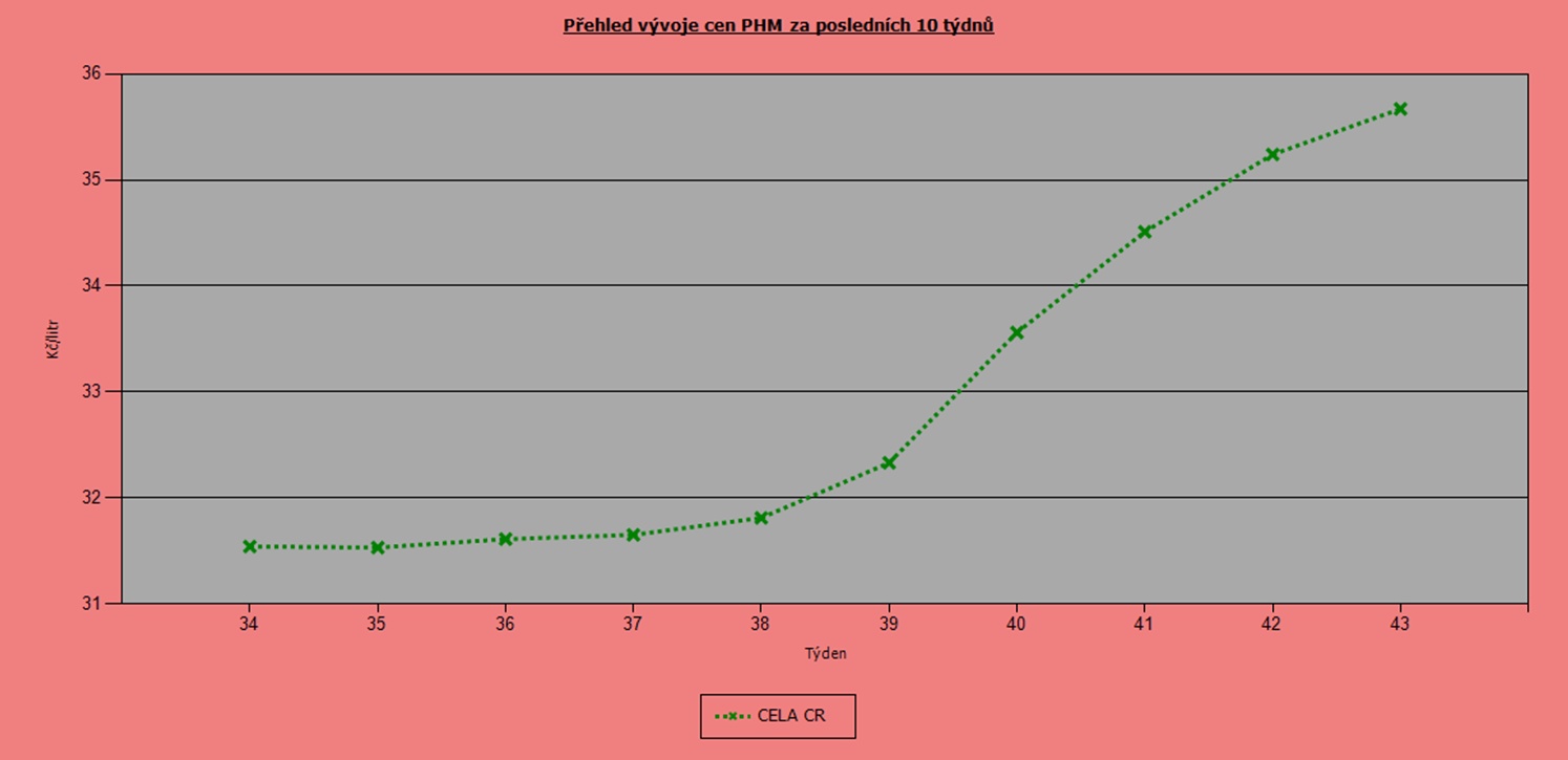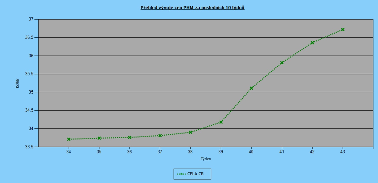 Enormní růst cen pohonných hmot pokračuje. V uplynulých deseti týdnech stoupla průměrná cena Naturalu 95 o 3,01 Kč/l a aktuálně se drží na 36,72 Kč/l. Stejné tempo sledujeme také u nafty, která ve stejném období podražila o 4,13 Kč/l na 30,61 Kč/l.