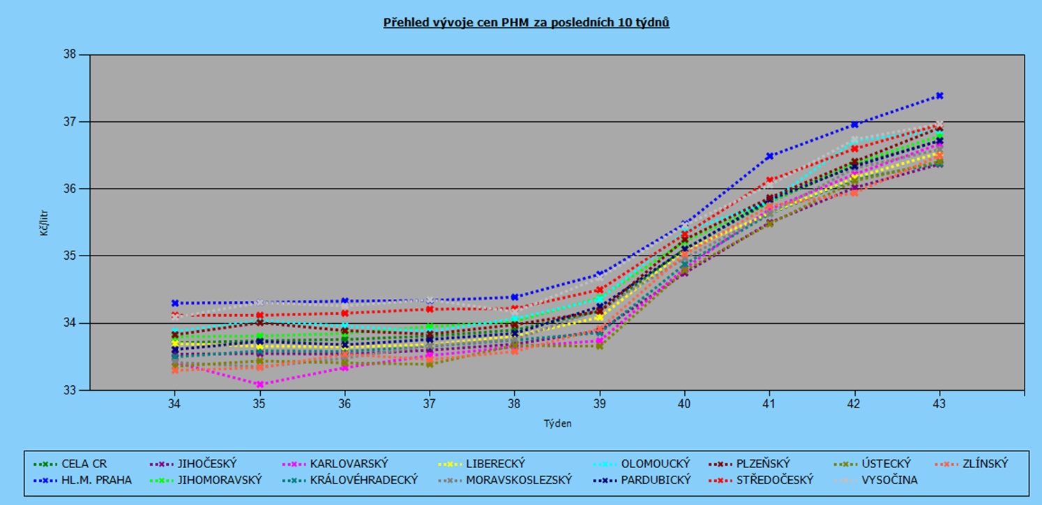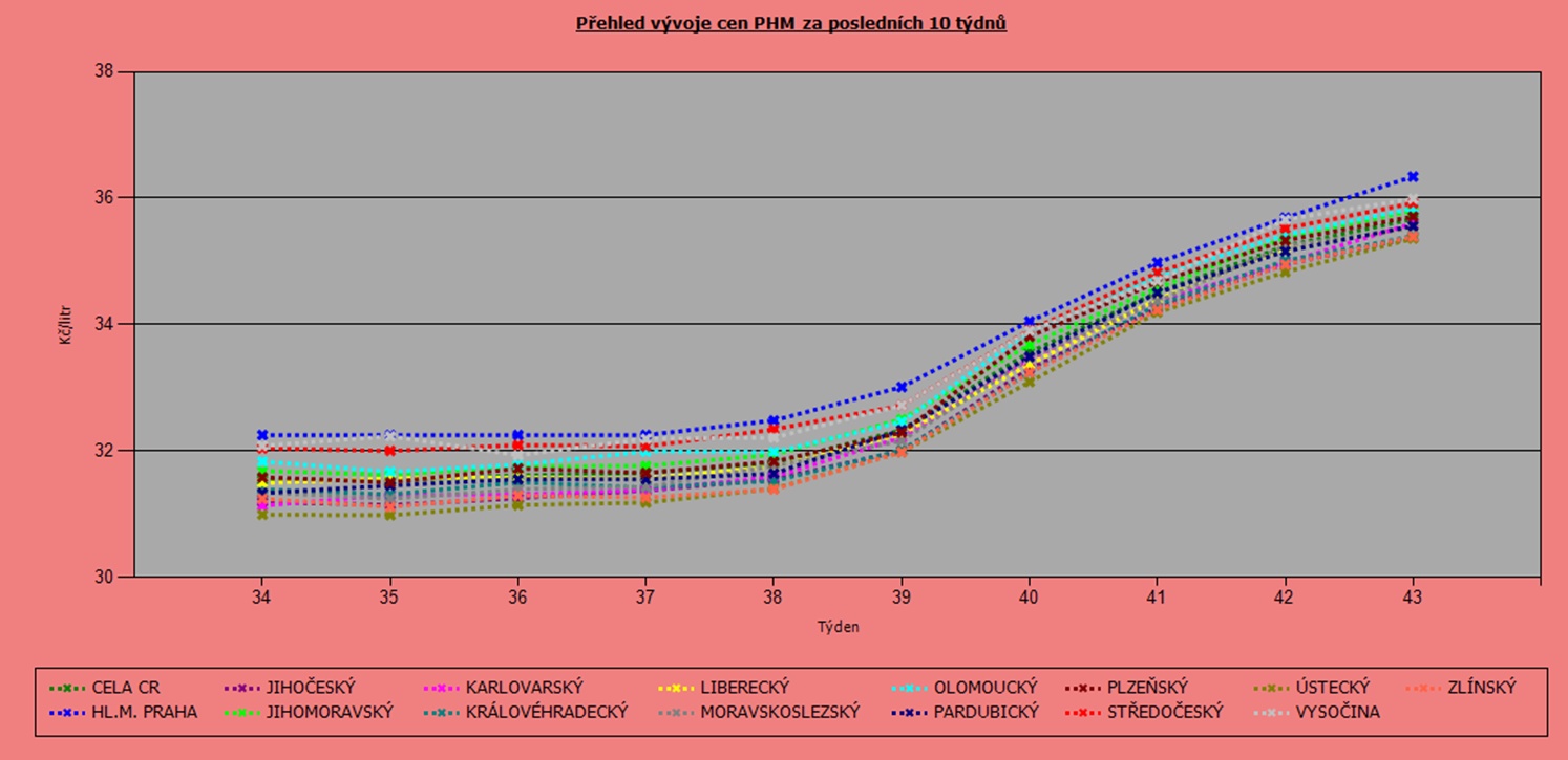 Vývoj cen nafty podle krajů