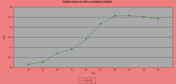 | 25. týden | 32,43 | 33,21 | 32,07 | 32,70 | 32,02 | |