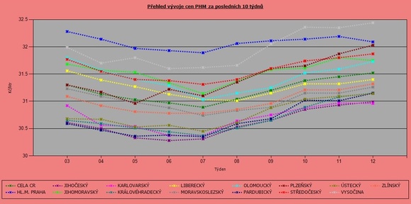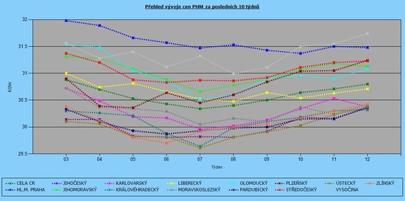 Zimní období pomalu končí a také ceny paliv se ustálily kolem třicetikorunové hranice. Nadále pokračuje trend, kdy cena nafty převyšuje Natural 95. Ten nejlevněji natankují řidiči ve Královéhradeckém kraji (30.32 Kč/l) a také na Pardubicku (30,36 Kč/l), kde se drží pod celorepublikovým průměrem. Hranici 31 Kč/l naopak překročily ceny na Vysočině (31,74 Kč/l) také v Praze (31,48 Kč/l).
