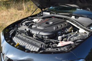 Kde Giulia rozhodně neztrácí krok s německou konkurencí, to je nabídka pohonných jednotek. Zážehové motory mají objem nejméně dva litry. S ním je výkon 147 nebo 206 kW, přičemž vyšší znamená pohon všech kol. Osmistupňové samočinné řazení je samozřejmostí nejen u dvoulitrů, ale také u vrcholného přeplňovaného šestiválce s objemem 2.9 litru, který Alfa Romeo vyvíjela společně s Ferrari. Ten pohání provedení Quadrifoglio a má 375 kW. Na rozdíl od mnohých konkurentů je výkon přenášen na kola zadní nápravy.