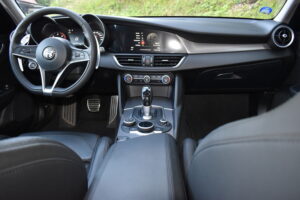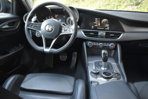 Alfa si dala záležet na tom, aby i Giulia těžila z DNA značky. To znamená třeba sportovnější posez, volant s tenčím věncem nebo provedení kapličky přístrojů, která naznačuje umístění analogových ukazatelů v samostatných tubusech. Italové design skutečně umějí. Středová konzole je mírně natočená k řidiči, což umocňuje pocit obklopení vozidlem.