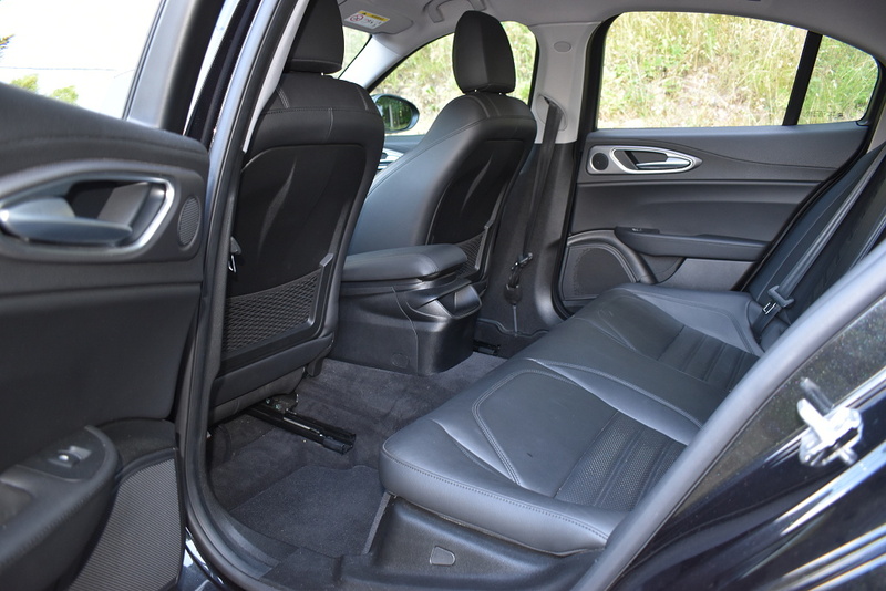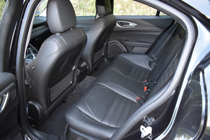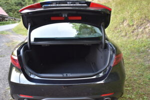 Giulia je posazená na platformě Giorgio, kterou Alfa vyvíjela od základů. To znamená, že třeba s Giuliettou nemá vůz mnoho společného – konec konců sedan je zadokolkou, hatchback předokolkou. V rámci střední třídy je Alfa Romeo jedna z nejkratších. Délku 4639 mm ale kompenzuje rozvor náprav natažený na 2820 mm, podélně je tedy vzadu místa relativně dost. Nad hlavou je místa tolik, kolik od 1426 mm vysokého vozu můžete čekat. Zavazadlový prostor pojme v základu 480 litrů, za sklopná a dělená zadní opěradla se však musí připlácet.