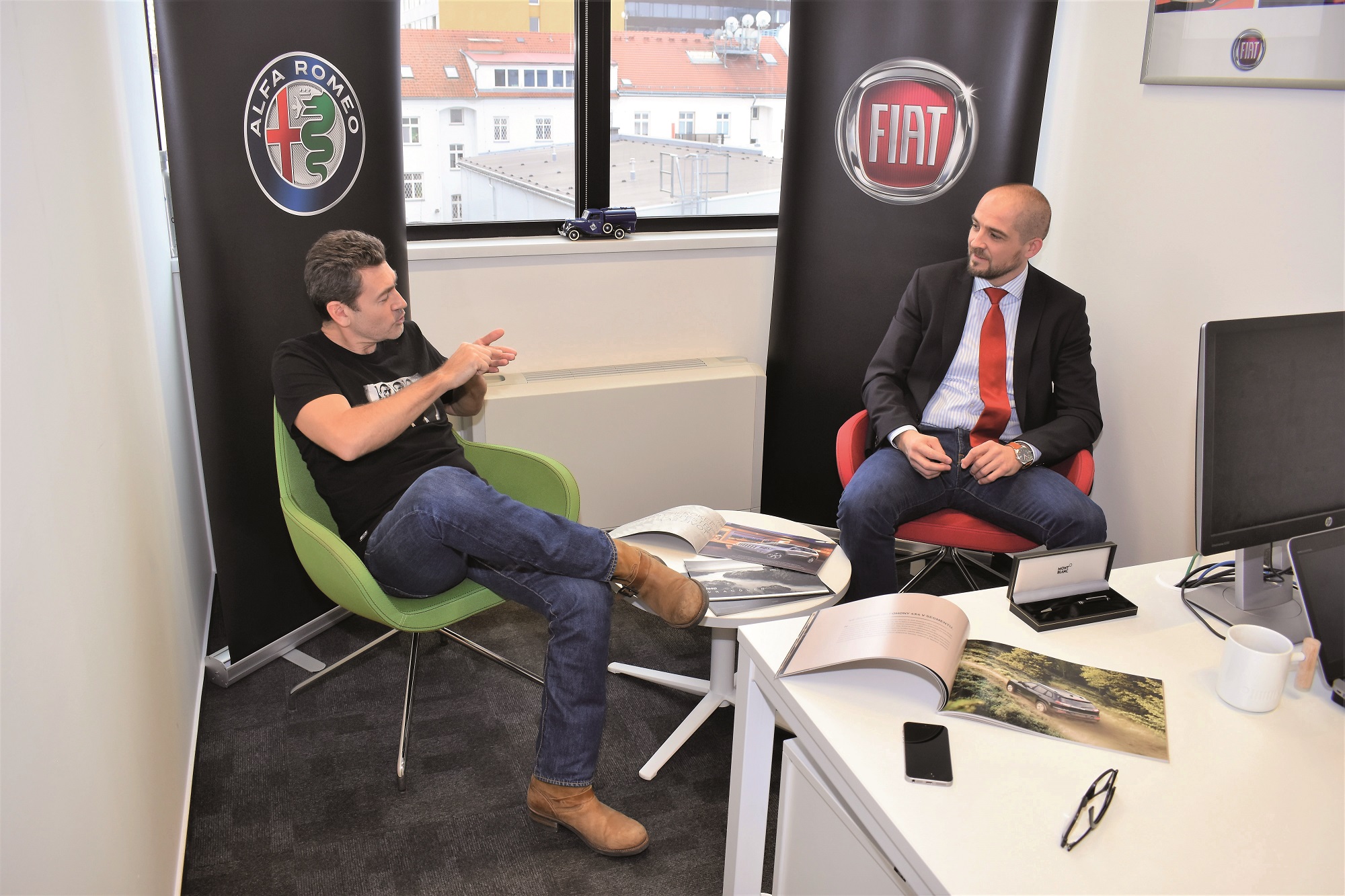 Právě slabost pro značky Alfa Romeo a Jeep dala opět dohromady dva známé, Radima Fialu a Martina Macko. Nebo spíš kamarády, protože oba se znají už od roku 1988, kdy se společně potkali na lyžařském soustředění na Starých Hamrech. Tehdy Martina Macko nenapadlo ani ve snu, že by někdy Fiat koupil Chrysler, nebo že by někdy pro italskou značku pracoval. Radim Fiala v té době studoval a netušil, že začne pracovat v Divadle Husa na provázku a že se mu za své první úspory nepodaří koupit značně ojetou Alfu Romeo Spider. A že se jednou opět do Alfy Romeo zamiluje.