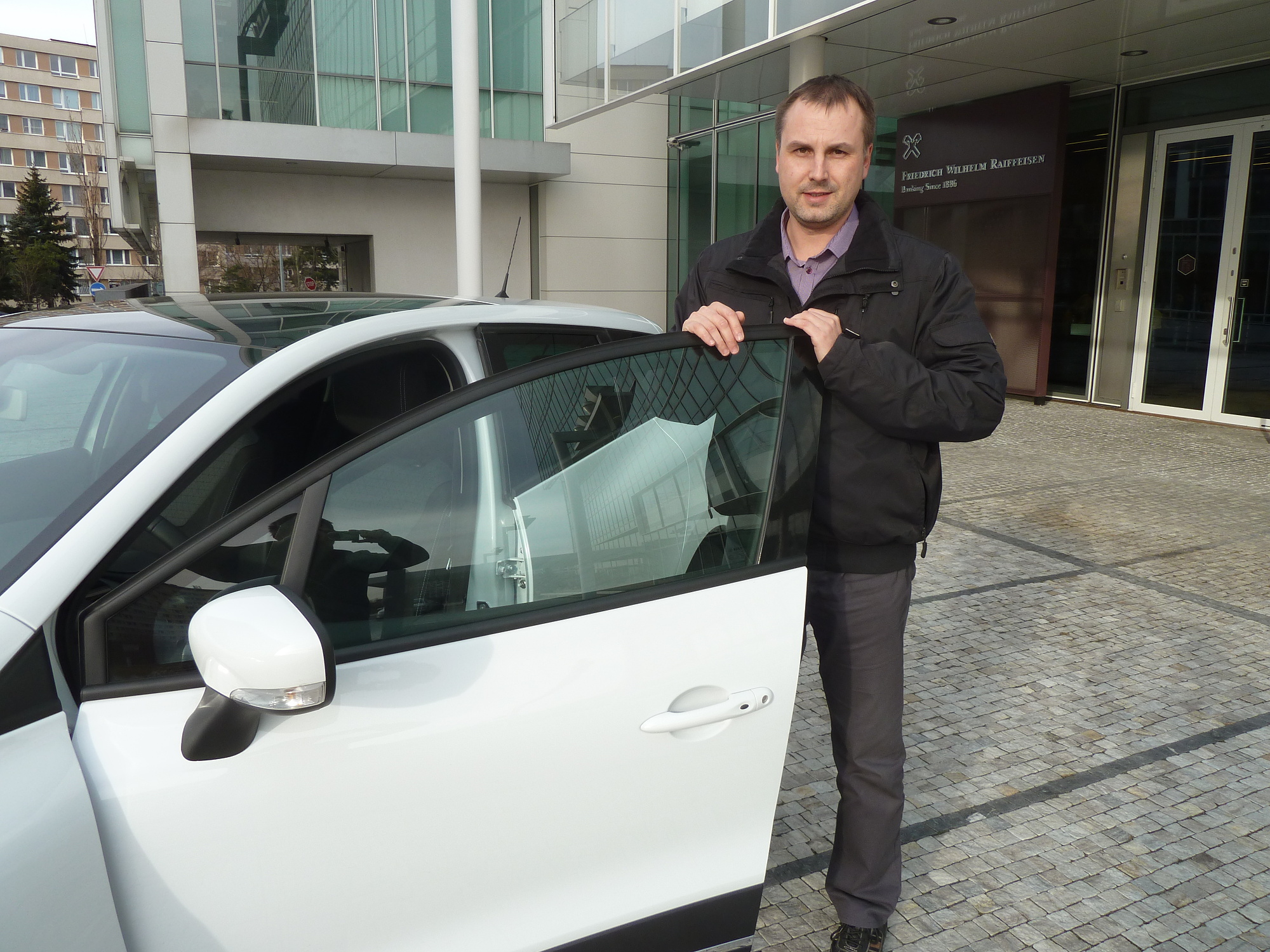 Miroslav Studený, Car Fleet Manager společnosti Raiffeisenbank, a.s. měl možnost vyzkoušet pohledné kombi Renault Clio Grandtour. Společnost Raiffeisenbank má všech 230 vozidel, převážně značky Škoda, koupené do majetku v hotovosti. Na základě výběrového řízení se ukázala tato varianta jako nejvýhodnější s ohledem na náklady po celou dobu užívání vozidla.