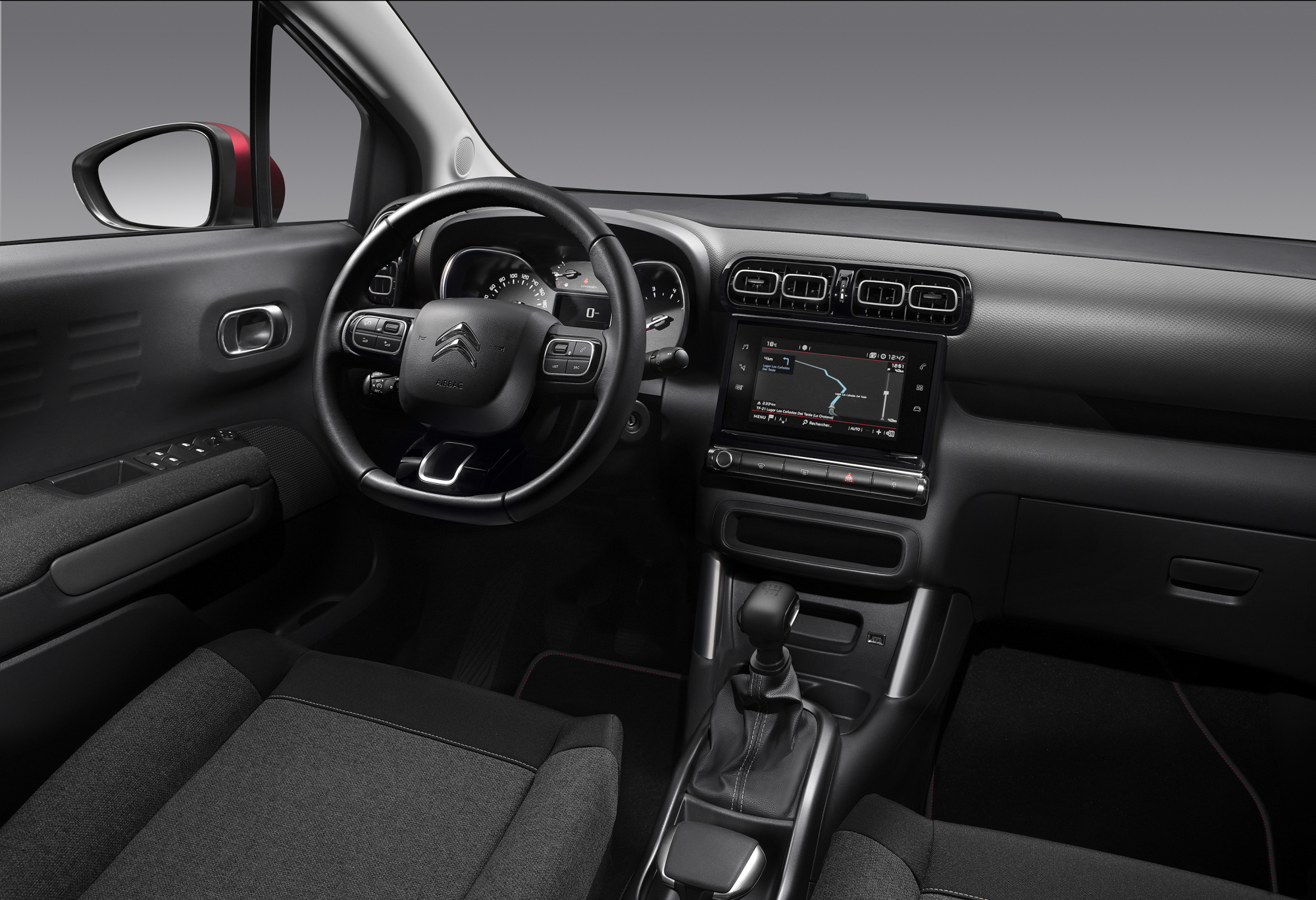 V interiéru podtrhuje příjemnou atmosféru SUV C3 Aircross lišta palubní desky z materiálu TEP Mistral v kombinaci se saténově chromovanou lištou kolem větráků, výsledek je čistý a elegantní. Pohodlná široká sedadla mají v horní části opěradel červenou vodorovnou kontrastní linii odkazující na barevné prvky exteriéru, s níž ladí použité bílé prošití. Logo „C-Series“ na sedadlech připomíná cestujícím exkluzivní charakter celé edice. Vše vpředu i vzadu doplňují specifické černé koberečky a červený lem prahu dveří.