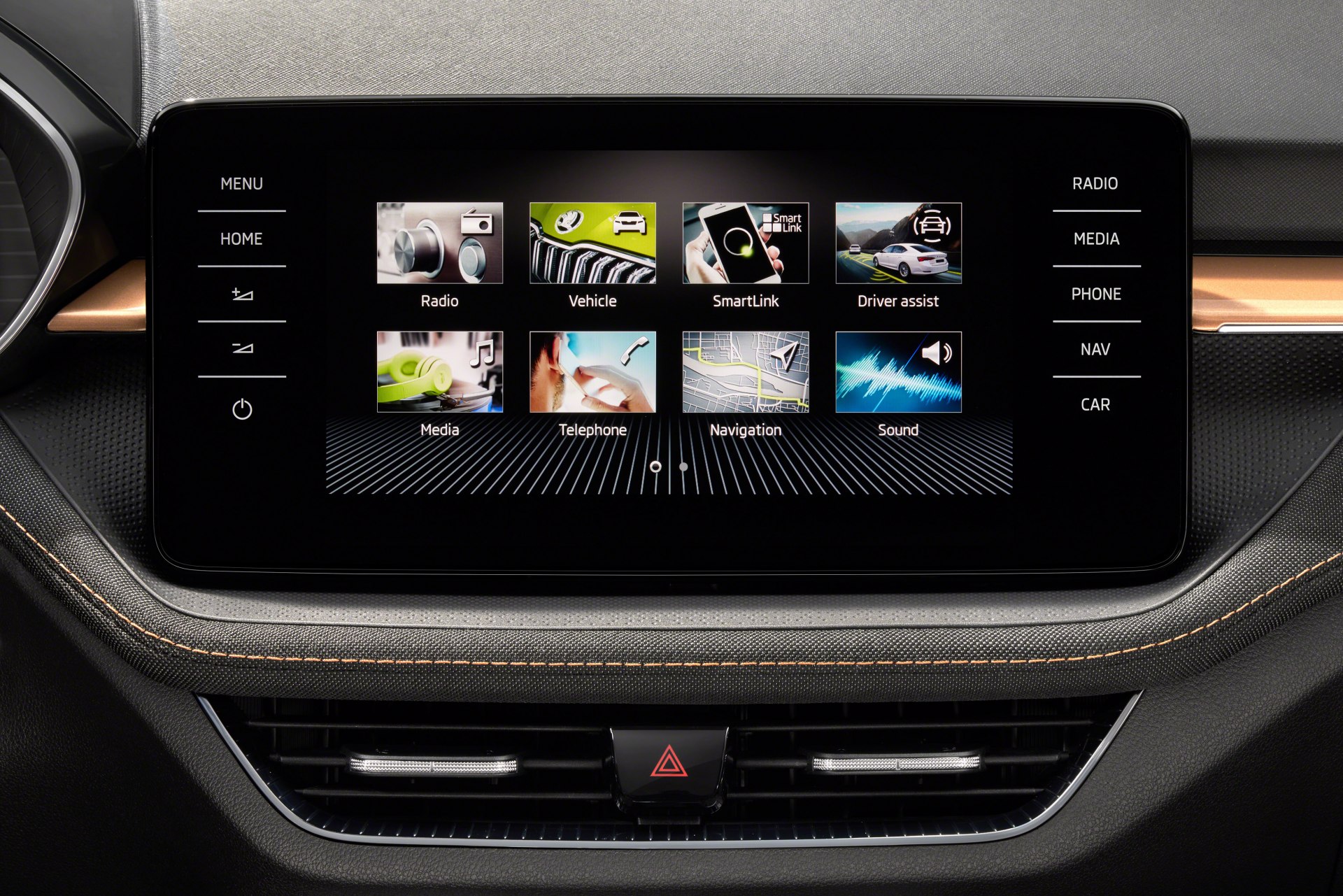 Infotainment systém Amundsen má konfigurovatelný 9,2″ displej a disponuje navigací s online podporou. K volitelným prvkům patří také zřízení wi-fi hotspotu. Po připojení mobilního telefonu lze spustit službu pro streamování hudby. Na přání lze objednat hlasové ovládání pomocí digitální asistentky Laury s online podporou. O lepší hudební přednes se stará na přání dodávaný sound systém Škoda s dodatečným zesilovačem a subwooferem umístěným v zavazadlovém prostoru.