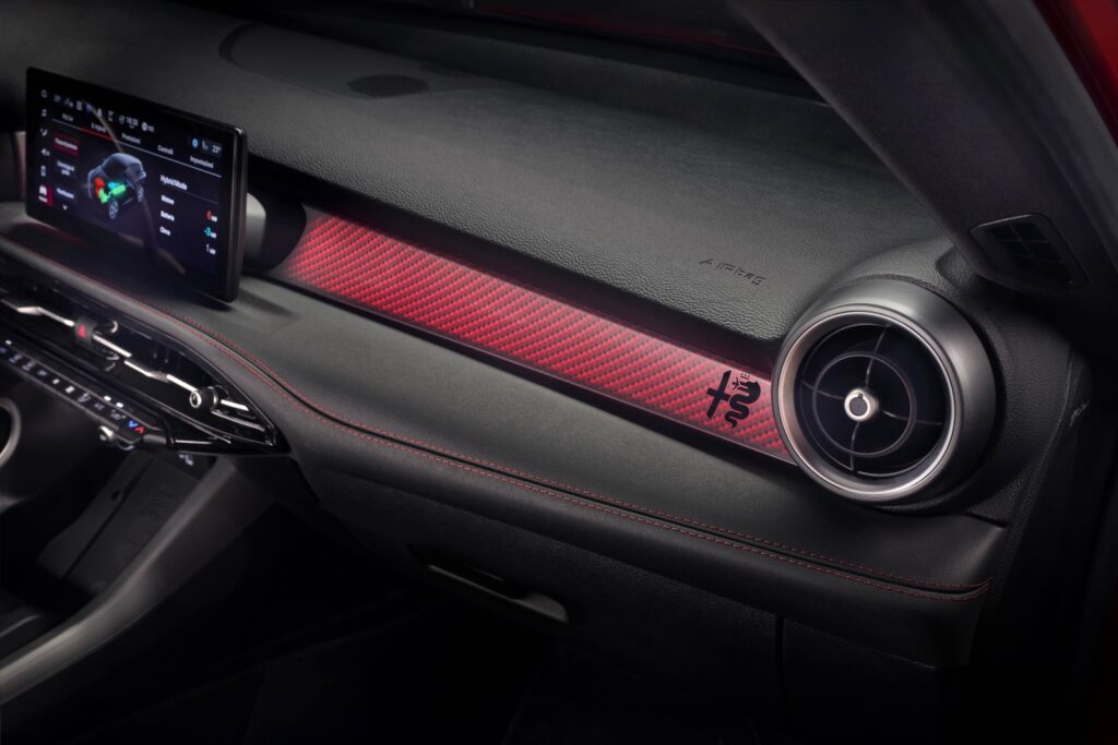 Stejné sportovní prvky najdeme i v interiéru všech tří modelů série Tributo Italiano. Jedná se o nová černá sportovní sedadla z perforované kůže s červenými detaily a přední opěrky hlavy s vyšívaným logem speciální série. Mezi další novinky patří červené prošívání palubní desky, sedadel a výplní dveří. Tonale Tributo Italiano navíc přichází s novým „karbonovým“ obložením palubní desky s logem Alfa Romeo, ambientním osvětlením a hliníkovou prahovou lištou.