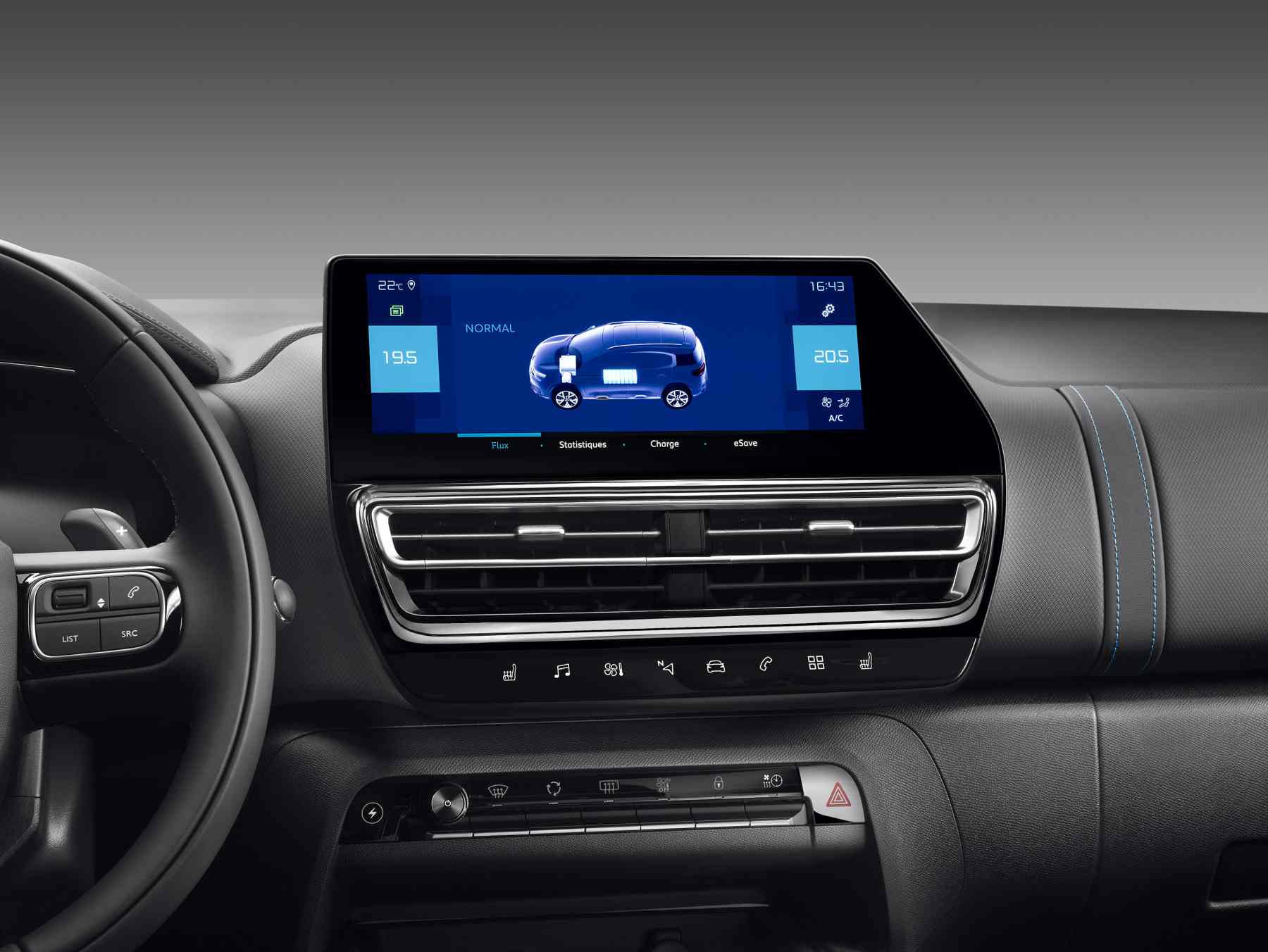 SUV C5 Aircross je vybaven novým 10″ dotykovým displejem umístěným nově nad výdechy klimatizace. Její ovládání je částečně integrované do infotainmentu a částečně si ponechalo analogová tlačítka. Nový 10″ dotykový displej bude v případě spalovacích motorů montován do verzí s navigací a v případě hybridů od verze výbavy Feel. Interiér celkově doprovázejí kvalitnější materiály.