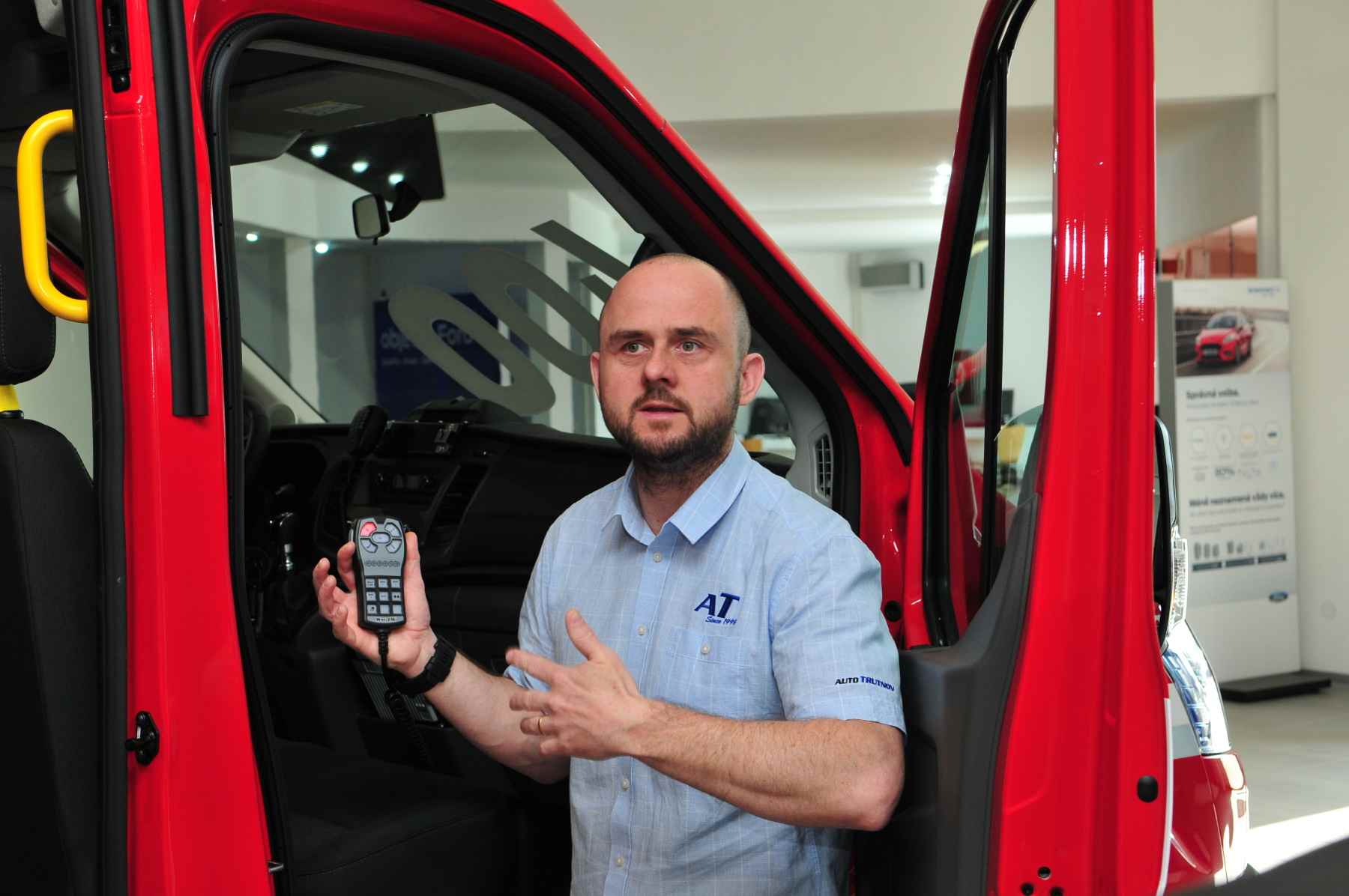 V Auto Trutnov osadili Transit Kombi nejen světelným a výstražným zařízením červenomodré barvy a radiostanicí, ale také střešní plošinou pro přepravu rozměrného vybavení nebo elektrickým navijákem. Ten má nosnost 3650 kg a ovládat ho lze i bezdrátově. V zadní části se nacházejí ruční radiostanice, trvale napájené ruční svítilny a výkonná pracovní světla. A samozřejmě také hasicí přístroje.