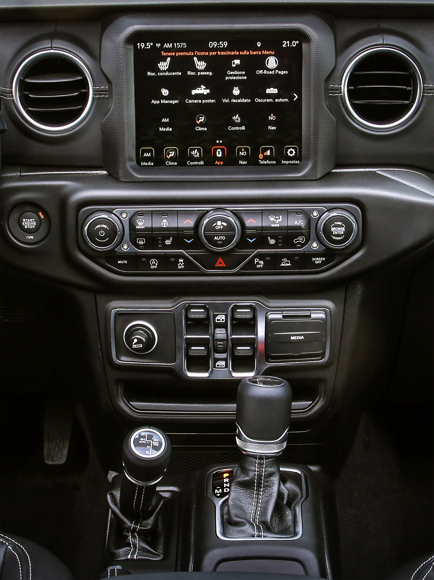 Kabina modelu Gladiator je vybavena systémem Uconnect čtvrté generace se 7- nebo 8,4palcovou dotykovou obrazovkou a přístrojovým panelem se 7palcovým displejem TFT, který řidiči umožňuje konfigurovat zobrazované informace, a to více než 100 různých způsobů.