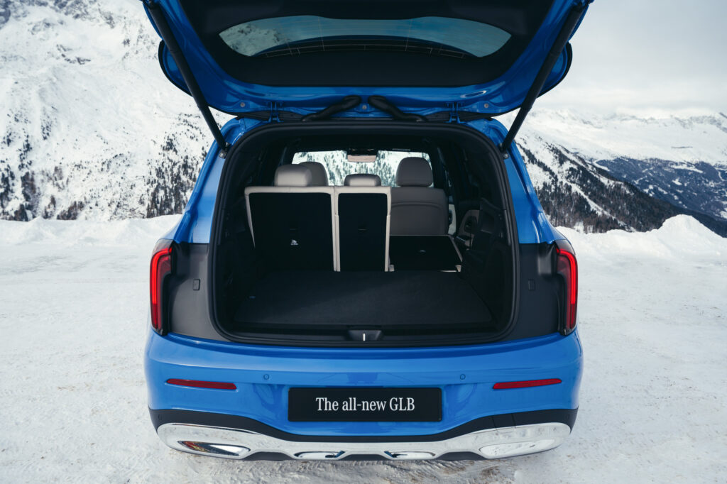 Nové GLB zůstává praktickým rodinným autem s důrazem na prostor. Nabízí pětimístnou i sedmimístnou konfiguraci s podélně posuvnou lavicí ve druhé řadě. Oproti předchozímu EQB i původnímu GLB přidává výšku nad hlavou v první i druhé řadě, k čemuž přispívá vyšší linie střechy v kombinaci se standardně dodávaným panoramatickým oknem. Cestující vzadu těží také z většího prostoru pro nohy a vylepšeného tvarování sedáků s delší oporou stehen. Výraznou novinkou je přední zavazadlový prostor, takzvaný frunk, s objemem 127 litrů, který doplňuje zadní kufr o objemu až 540 litrů v pětimístné, respektive 470 litrů v sedmimístné verzi. Po sklopení zadních opěradel se prostor rozšíří až na 1.715, respektive 1.605 litrů.