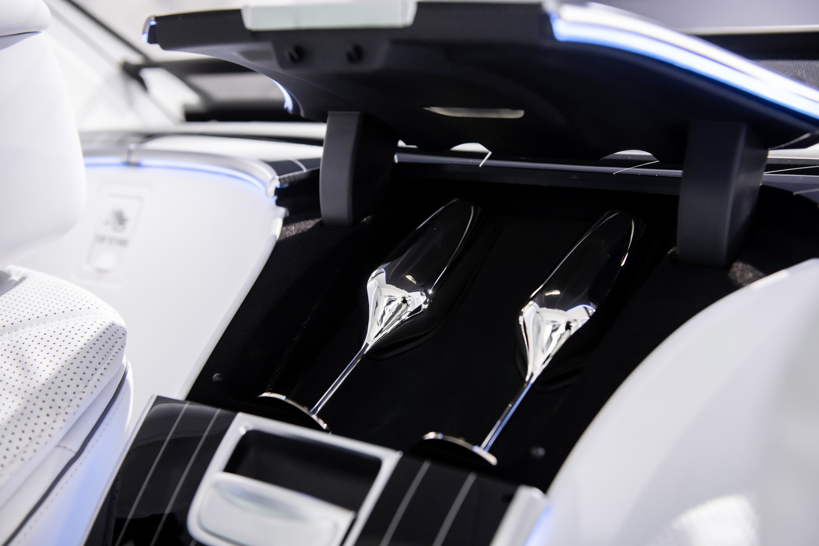 Sada pro šampaňské, která je pro Českou republiku součástí sady First Class, završuje exkluzivní atmosféru v zadní části interiéru vozů Mercedes-Maybach. Na míru vyrobená vložka do odkládací schránky a dva optimalizované držáky na středové konzole udrží číše bezpečně na svém místě i za jízdy.