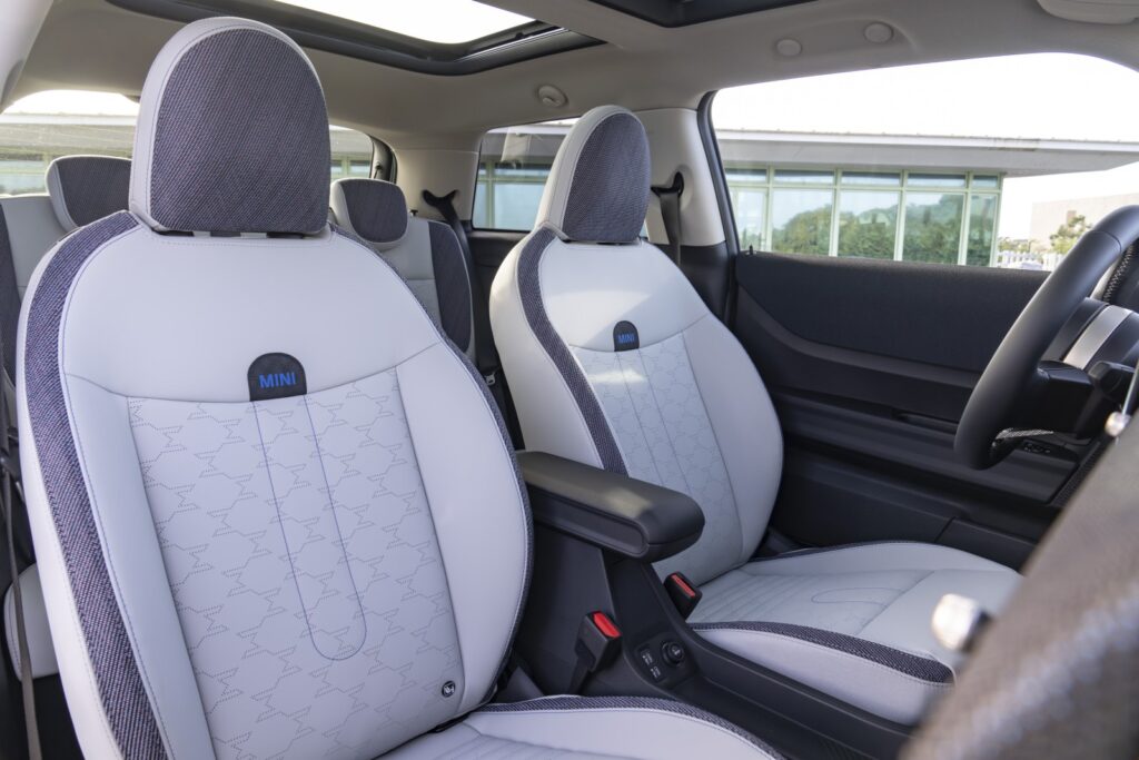 Ve výbavě Classic se palubní deska vyznačuje černo-modrými plochami tvořenými úpletem. Sedadla čalouněná kvalitním materiálem Vescin v šedé nebo černé barvě vytvářejí s ostatními prvky interiéru výrazný kontrast. Stylový vzor perforace „Houndtooth“ na opěradle i sedáku, stejně jako modré ozdobné prošívání a výrazné látkové vložky na bocích podtrhují nezaměnitelný charakter interiéru tohoto MINI.