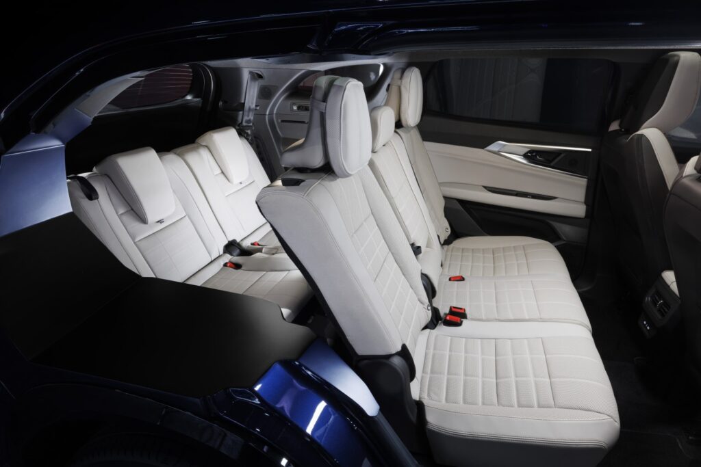 Cestující ve třetí řadě (která je při objednávce k dispozici bez příplatku) ocení také dostatečný prostor pro kolena (128 mm) a funkce Easy Access, které jim umožňují posunout sedadla druhé řady o 260 mm směrem dopředu a sklopit opěradla dopředu. Každý z cestujících má k dispozici předpínače bezpečnostních pásů, stropní osvětlení s dotykovým ovládáním, nabíjecí dokovací stanici USB-C a v některých verzích si může užívat i audiosystém Harman Kardon.