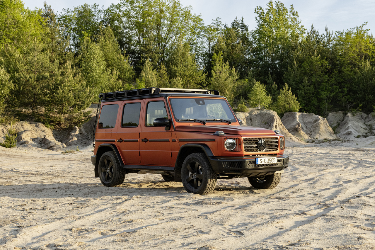 K němu lze mimo jiné upevnit skládací střešní stan, a Třídu G tak proměnit v „offroadový obytný vůz“. Oba prvky výbavy Professional jsou stejně jako 18palcová kola matně černé, a přispívají tak k harmonickému celkovému vzhledu. V rámci volitelně dodávané sady Night jsou kromě toho černé také kryty vnějších zpětných zrcátek, hvězda Mercedesu a označení typu. V interiéru umocňuje vysokou míru individualizace Třídy G čalounění černou kůží spolu s ozdobnými prvky G manufaktur z jasanového dřeva s otevřenými póry a černým tónováním.