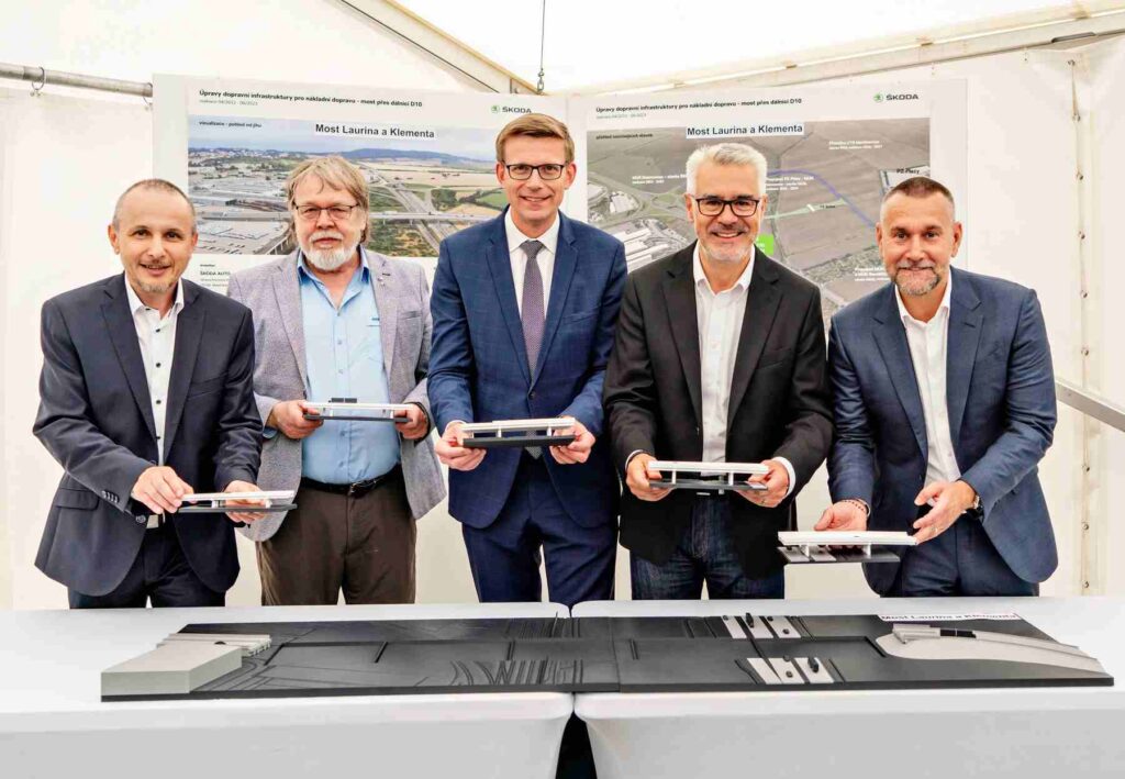 Škoda Auto slavnostně zahájila stavbu čtyřproudého mostu Laurina & Klementa přes dálnici D10, a to za účasti ministra dopravy Martina Kupky, zástupců kraje a zúčastněných měst i dalších hostů. Nové přemostění vznikne mezi sjezdy č. 44 Mladá Boleslav a 46 Kosmonosy.