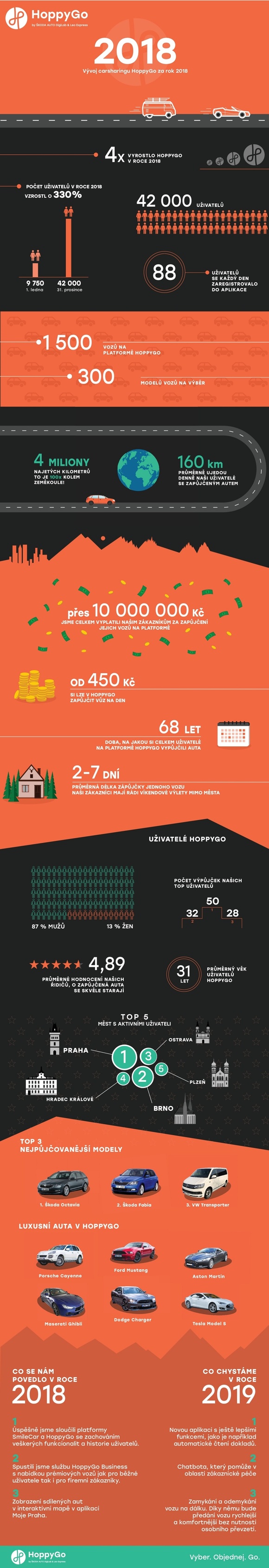 V současnosti nabízí flotila HoppyGo přes 1500 vozů a více než 300 různých modelů aut. Na své si přijdou milovníci sportovních aut, kteří si chtějí vyzkoušet zajímavé modely, ale i ti, kteří potřebují dodávku na stěhování, vícemístné auto na rodinnou dovolenou, nebo třeba malé levné auto na nízkonákladový výlet.