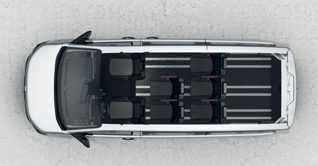 Základ nově tvoří Shuttle DIN, který startuje jako osmimístné provedení s běžným rozvorem a volitelně i s prodlouženou verzí. V prostoru pro cestující pracuje se třemi samostatnými sedadly ve druhé řadě a třímístnou lavicí ve třetí řadě. Vpředu může být dvojice samostatných sedadel, případně třímístná lavice (u verzí Flex a Comfort jsou vpředu standardně dvě samostatná sedadla). Důraz se klade na robustní materiály a dlouhou životnost, zadní sedadla lze sklopit opěradly nebo „zabalit“ pro praktičtější využití.