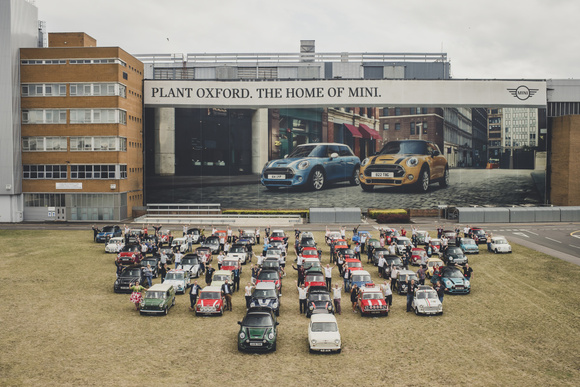 Před tímto výročím zveřejnilo MINI na sociálních sítích příspěvek, ve kterém britskou komunitu značky žádalo o sdílení osobních příběhů ze 60leté historie MINI s ostatními fanoušky. Obrovský ohlas umožnil shromáždit typická vozidla z každého výrobního roku mezi lety 1959 až 2019, která se následně vystavila při příležitosti oslavy výroby výročního MINI v oxfordské továrně. Vrcholem tohoto výjimečného setkání byla spanilá jízda na mezinárodní setkání International Mini Meeting v Bristolu. V čele konvoje jelo úplně první vyrobené klasické Mini. Má registrační značku 621 AOK, která je mezi fanoušky MINI velmi dobře známá. V závěsu ho v chronologickém pořadí následovali protagonisté 60 let historie, přičemž tento impozantní výroční průvod uzavíral desetimiliontý vyrobený kus značky.