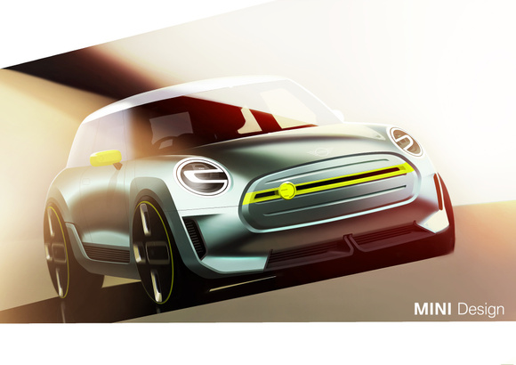 jasně najevo, že se jedná o automobil značky MINI. Zároveň je na první pohled patrné, že se jedná o elektrický automobil. Mezi identifikační prvky patří jasná kontrastní stříbrná a žlutá barevná schémata připomínající starší MINI E a také výrazné logo E. Jelikož elektrická pohonná jednotka vyžaduje jen velmi málo chladicího vzduchu, je maska chladiče pro lepší aerodynamiku uzavřena. Výrazná žlutá lišta v masce s logem E ve stejné barvě vytváří silný kontrastní efekt, který se odráží ve tvaru světel pro denní svícení full-LED předních světlometů.