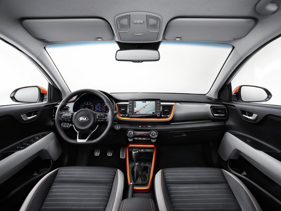 Přístrojová deska je s ohledem na snadné ovládání mírně nakloněna směrem k řidiči a v jejím středu se nachází dotykový 7‘‘ displej, který je k dispozici ve všech úrovních výbavy a podporuje technologie Apple CarPla a Android Auto nabízející plný přístup k funkcím smartphonu. Stonic vybavený volitelnou satelitní navigací nabízí i online služby Kia Connected Services s podporou TomTom®.