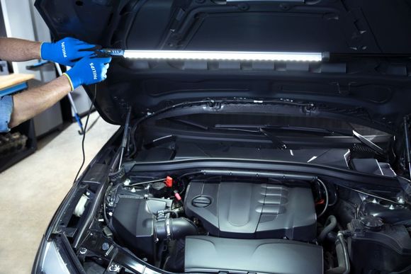 Světelný paprsek s rozptylovým uhlem 120° osvětluje celý motorový prostor. Svítidlo je vybaveno integrovaným teleskopickým držákem s možností nastavení 1,1 až 1,8 m, díky čemu jej lze upevnit pod jakýmkoliv krytem motoru. Vnitřní strana háků je pokryta pěnou, která chrání automobil před poškrábáním. Kromě toho lze zavěšené svítidlo otáčet kolem vlastní osy o 360° a změnit proud světla.