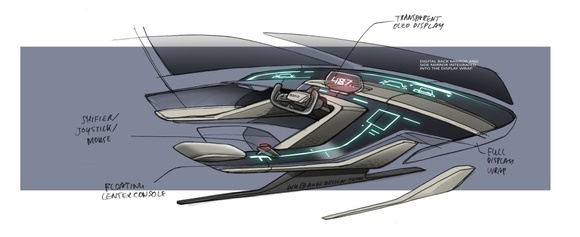 Audi RSQ e-tron pozoruhodným způsobem, například hologramovým rychloměrem a elektrickou mobilitou, ukazuje, jak by mohla vypadat mobilita budoucnosti. Jeho exteriér a interiér navrhli designéři Audi v úzké spolupráci s Blue SkyStudios, dceřinou firmou společnosti Twentieth Century Fox.
