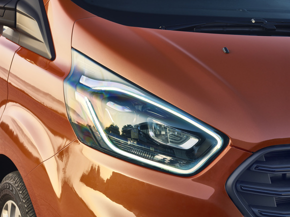 O výrazním kroku vpřed přesvědčí nová generace Customu už na první pohled. Výrazné přídi dominuje široká maska chladiče se třemi lamelami a velkými světlomety s možností xenonové optiky a LED denním svícením dostupným u vyšších výbav.