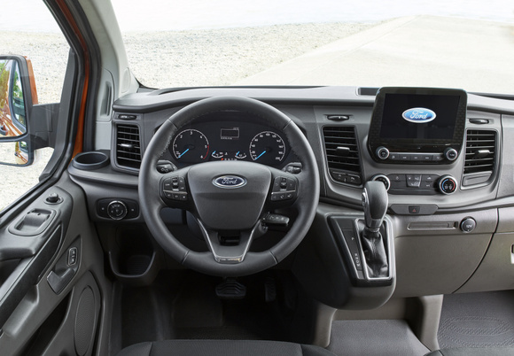 Moderní vzhled kabiny je inspirován osobními automobily, nezapomíná však na praktickou stránku dodávky. Palubní deska byla navržena v novém designu, který automobilka poprvé použila ve Fiestě. Ten se opírá o široké možnosti využívání mobilního telefonu a multimediálního zařízení, jehož obrazovka vyčnívá z palubní desky. Mutimediální systém SYNC 3 dostupný ve vyšších výbavách obsahuje navigaci, plné spojení s chytrým telefonem, hlasové ovládání a možnost ovládání gesty.
