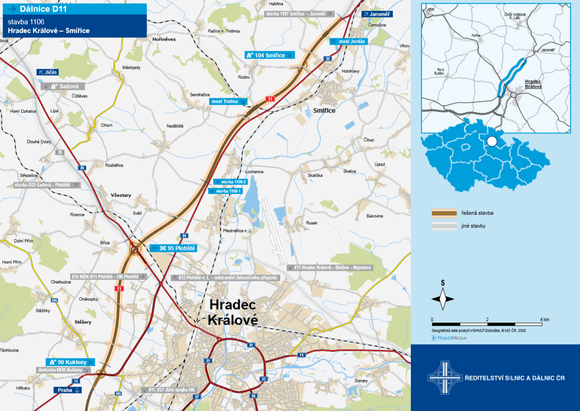 V současné době byla zahájena výstavba dálnice D11 Hradec Králové – Smiřice. Stavba řeší pokračování dálnice D11 od Hradce Králové severním směrem na Polsko. Spolu s navazujícím úsekem mezi Smiřicemi a Jaroměří, který byl zahájen v květnu letošního roku, odvede dálnice dopravu z dnes již kapacitně nedostačující silnice I/33 v úseku Hradec Králové – Jaroměř.