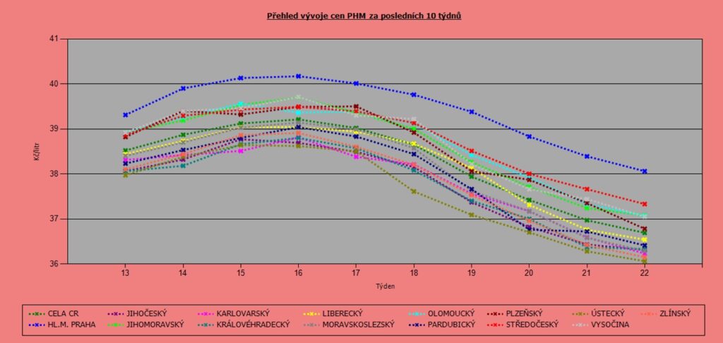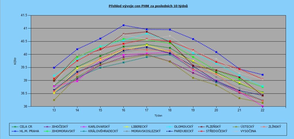 Za Natural 95 zaplatí nejvíce tradičně řidiči v Praze (39,22 Kč/l) a nevyplatí se jim zastavit ani ve Středočeském kraji (39,05 Kč/l). Dotankovat naopak doporučujeme v Ústeckém (39,10 Kč/l) a Jihočeském kraji (39,29 Kč/l).