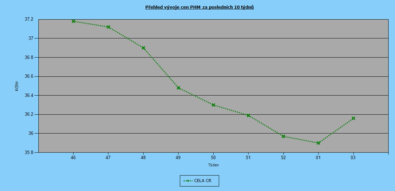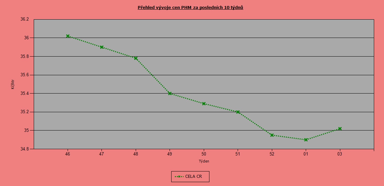 Od poloviny listopadu jsme si užívali zvolna klesajících cen pohonných hmot. Radost však opět střídá nejistota, jelikož nafta už druhý týden zdražuje a Natural 95 ji se sedmidenním zpožděním následuje. V průměru zdražil o 26 haléřů na 36,16 Kč/l, nafta poskočila o 12 haléřů na 35,02 Kč/l.