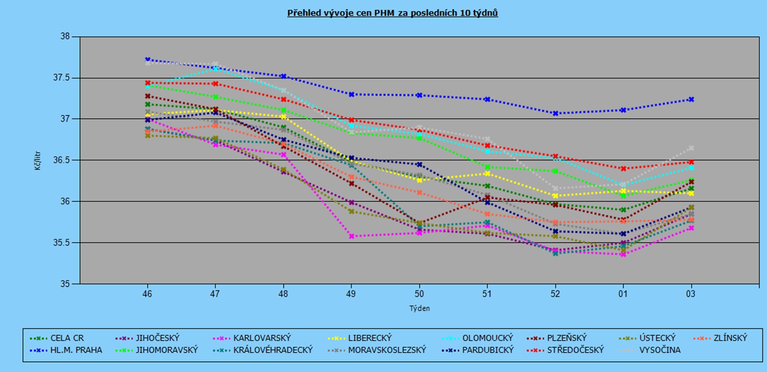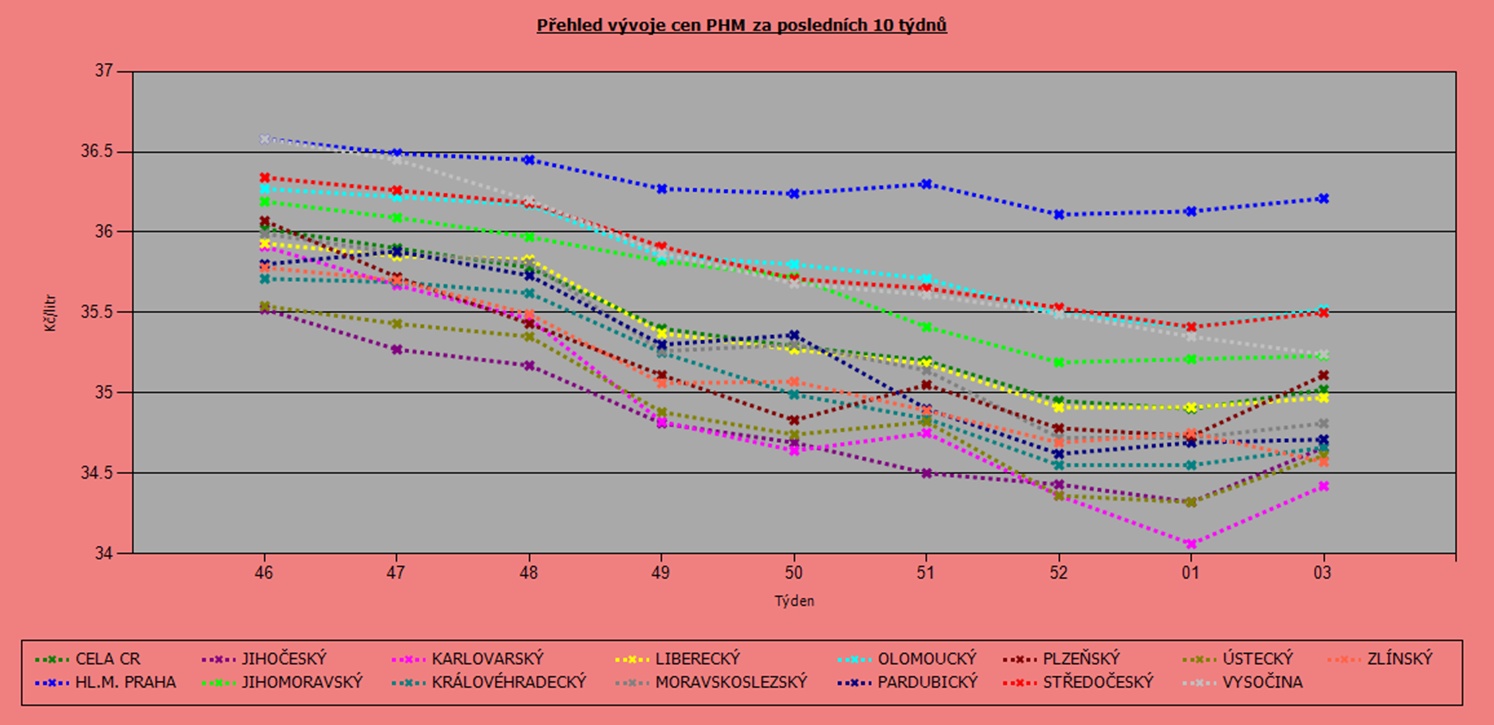 Vývoj cen nafty podle krajů