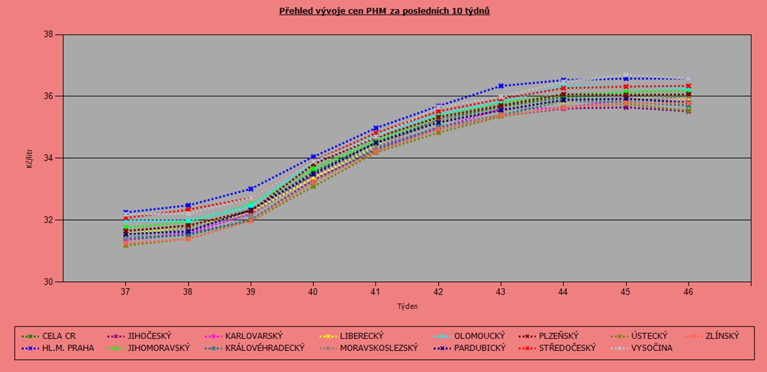 Vývoj cen nafty podle krajů