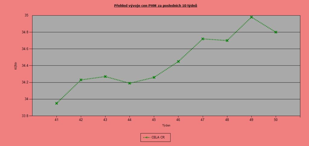 I v průběhu adventu zůstávají ceny pohonných hmot stabilní s minimálními rozdíly. Natura 95 zlevnil o 7 haléřů na litru a nyní za něj zaplatíte v průměru 35,61 Kč. Nafta zlevnila o 18 haléřů na průměr 34,80 Kč za litr.
