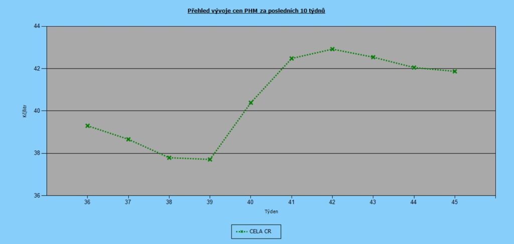 Po cenovém růstu od poloviny září jsme se dočkali opět poklesu cenové hladiny. Za uplynulý týden zlevnil Natural 95 o osmnáct haléřů na 41,87 Kč/l. O korunu a pět haléřů spadla také cena nafty.