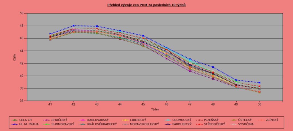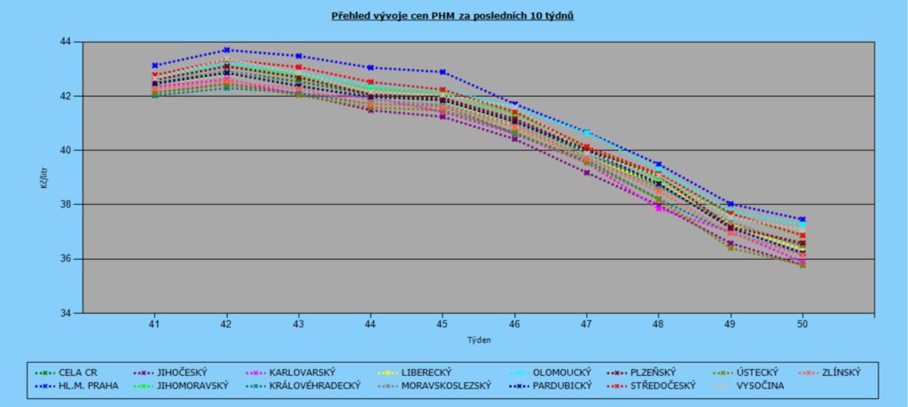 Vývoj cen nafty podle krajů