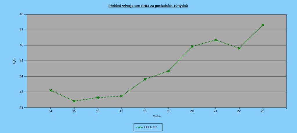Snížení spotřební daně o 1,50 Kč pocítili řidiči prakticky pouze první den. Následně ceny znovu rostly a nyní atakují nová maxima, která tu zatím nebyla. Natural 95 natankují řidiči v průměru za 47,32 Kč/l a naftu za 46,52 Kč/l. Za poslední týden tak obě komodity výrazně zdražily.