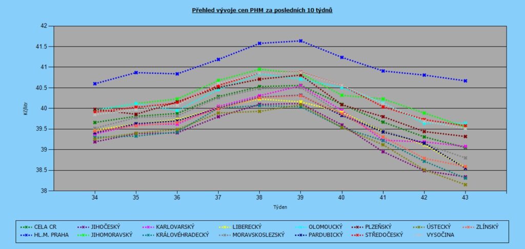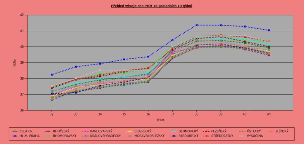 Vývoj cen nafty podle krajů