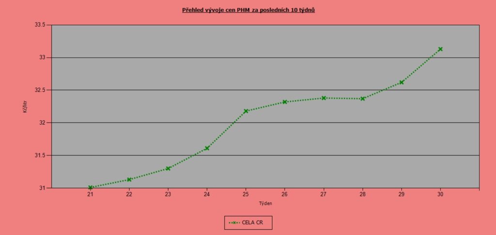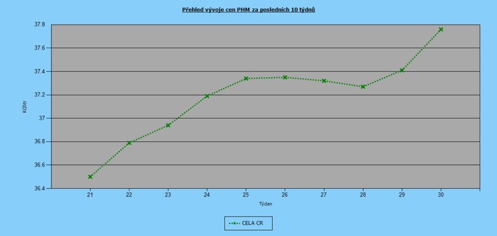 Majitelé dieselových vozů si v minulém týdnu připlatili o kus více. Nafta totiž zdražila o 51 haléřů na průměrných 33,16 Kč/l. Cena Naturalu 95 vzrostla také, ale o menších 35 haléřů na celorepublikový průměr 37,76 Kč/l.