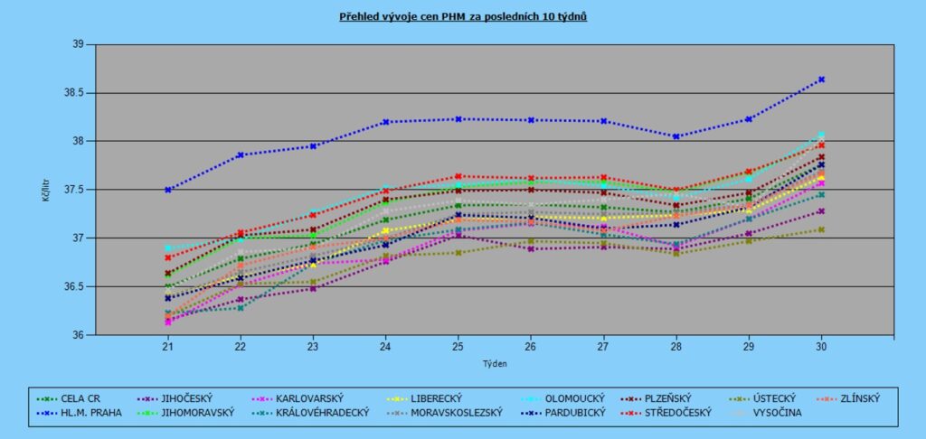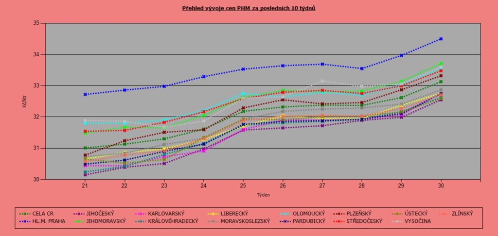 Vývoj cen nafty podle krajů
